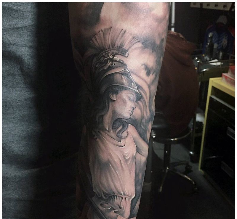 当前位置: 首页 >上海市纹身店-顷久Tattoo纹身图案>神话人物纹身图片_成品手臂手部欧美写实肖像欧美素描人物鬼神静物纹身图案