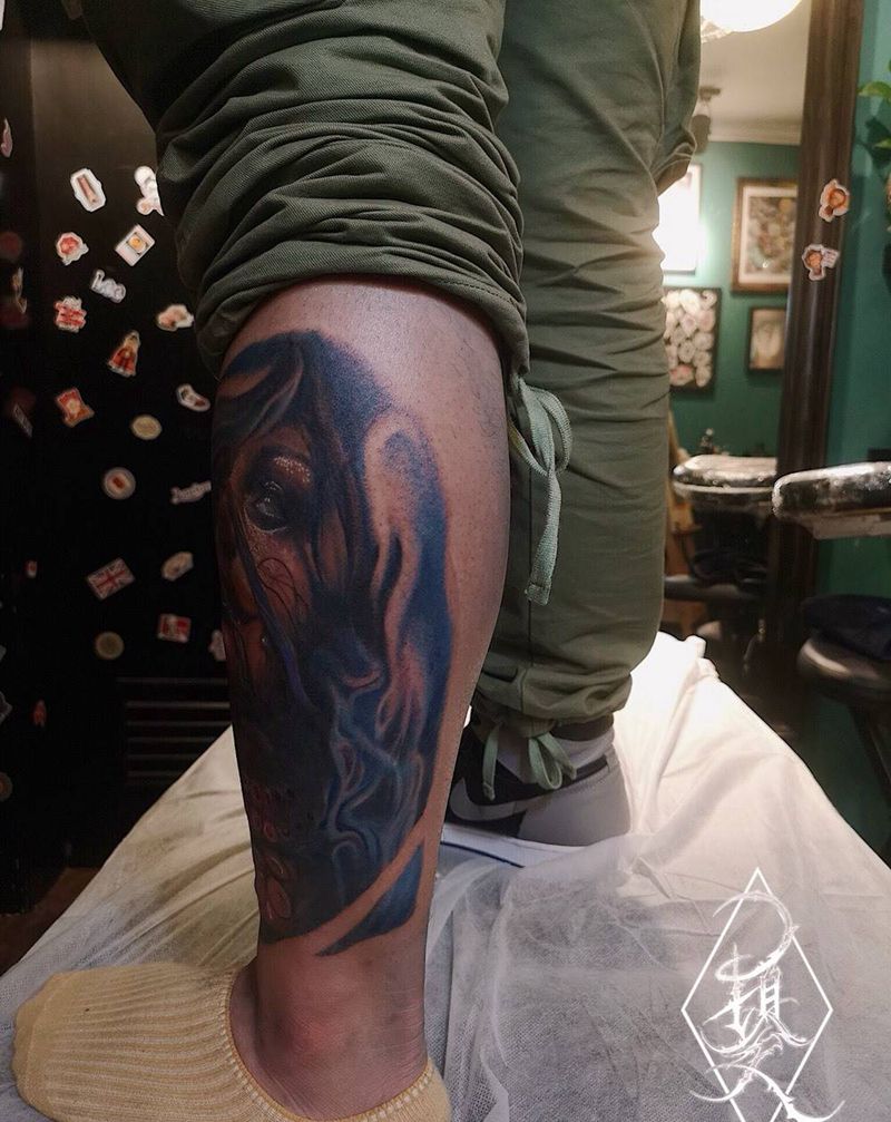 当前位置: 首页 >上海市纹身店-顷久Tattoo纹身图案>彩色写实纹身图片_手臂脚部欧美写实New School彩色纹身图案