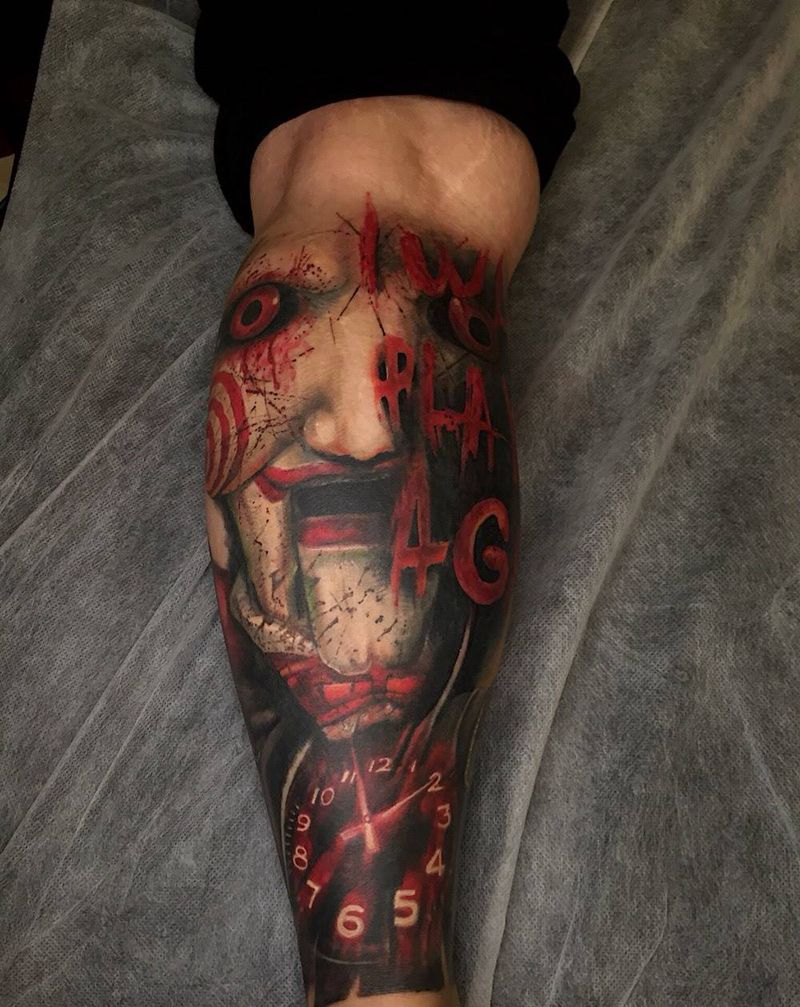 彩色写实 电锯惊魂纹身图片_手臂腿部欧美写实纹身图案