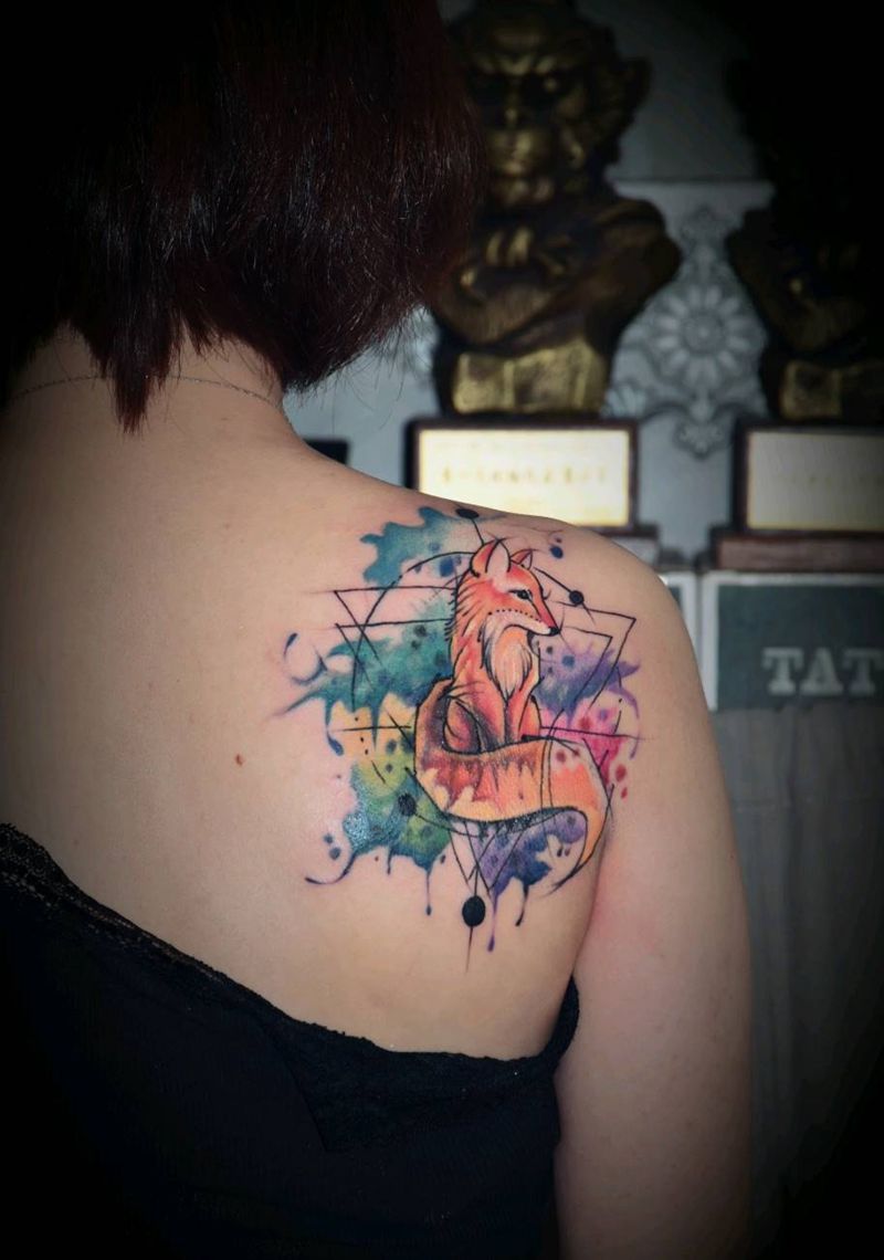 覆盖作品纹身图片_肩部背部水彩水墨纹身图案