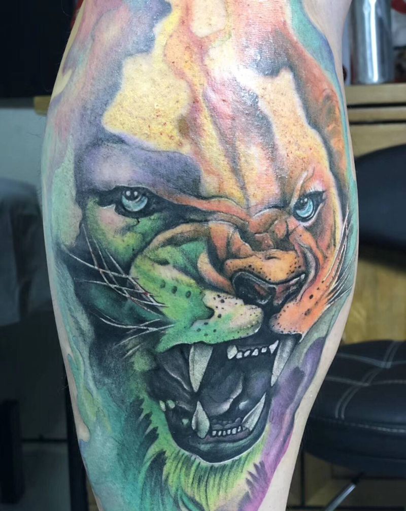 • T网红王老大花腿龙纹身图片_腿部新传统纹身图案