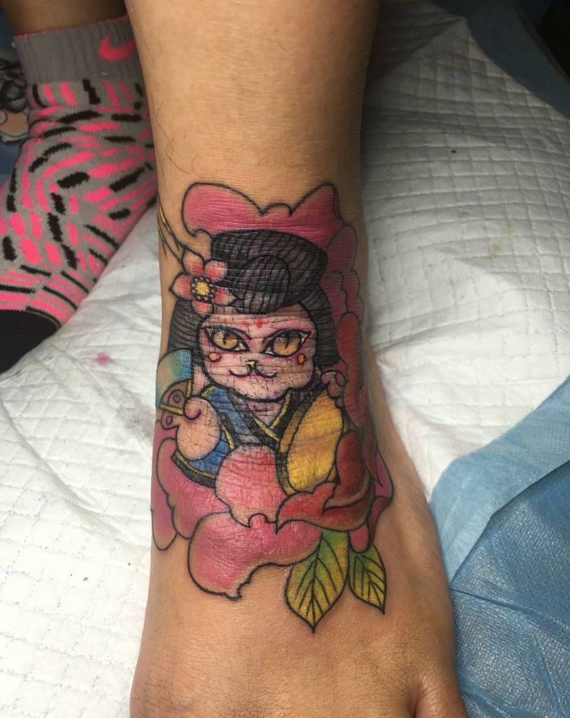 当前位置: 首页 >上海市纹身店-龙城刺青纹身图案>疤痕皮癣遮盖,艺妓猫。纹身图片