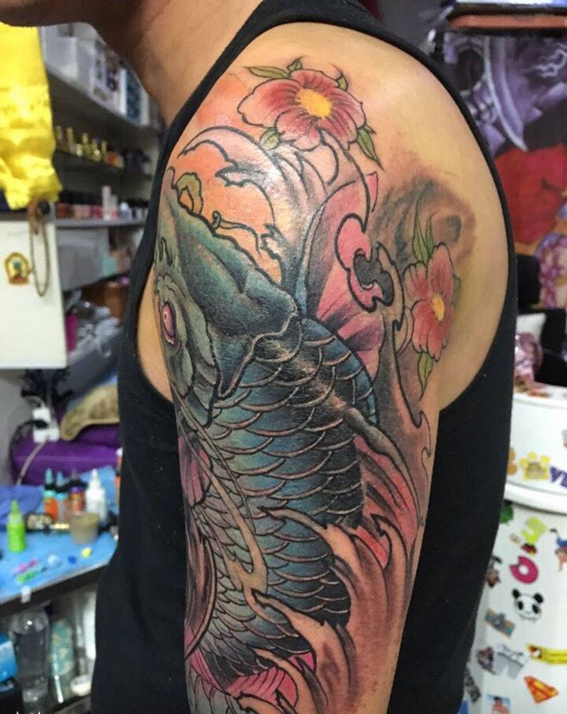 • T网红王老大花腿龙纹身图片_腿部新传统纹身图案