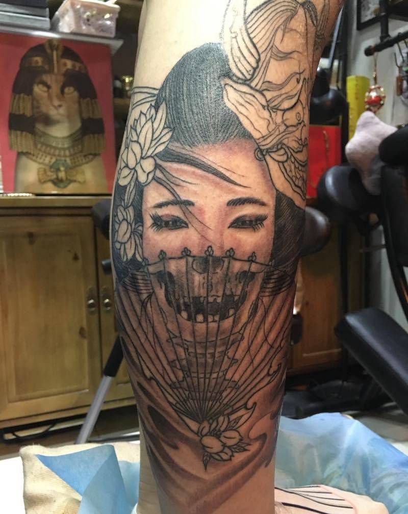 当前位置: 首页 >上海市纹身店-龙城刺青纹身图案>艺,黑灰底,未完成。纹身图片