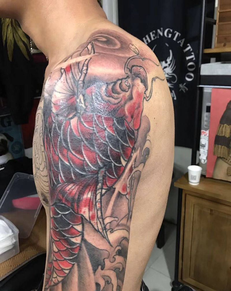 • T网红王老大花腿龙纹身图片_腿部新传统纹身图案