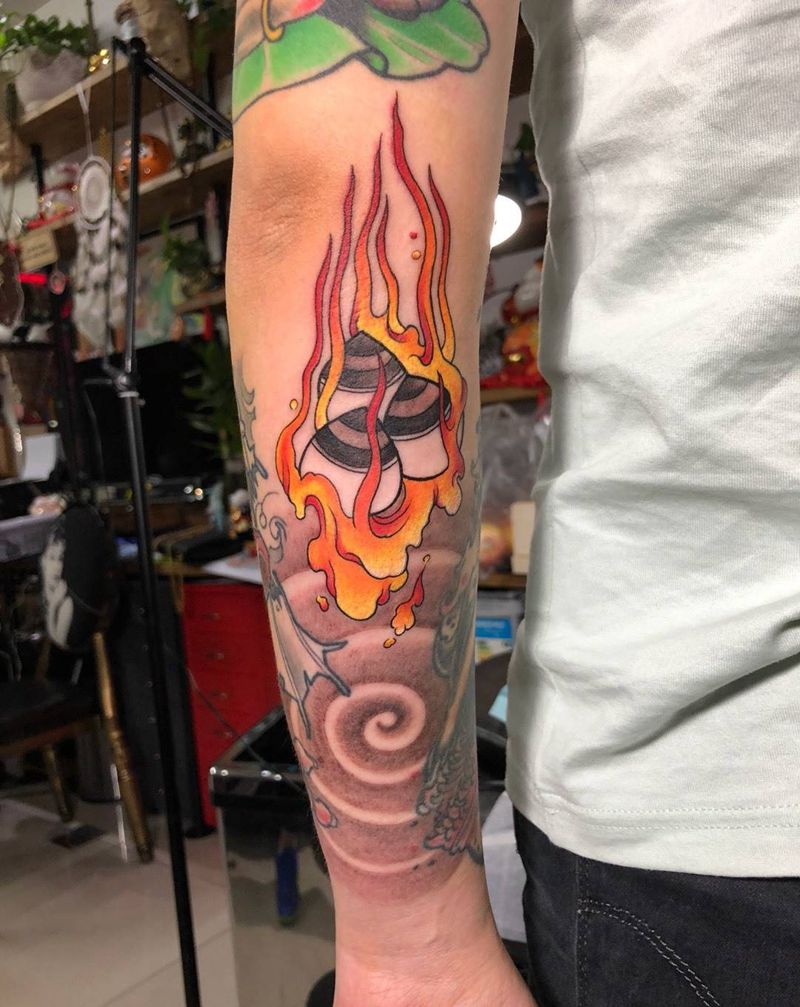 • T包小腿吹火男+阿多福纹身图片_腿部老传统新传统吹火男阿