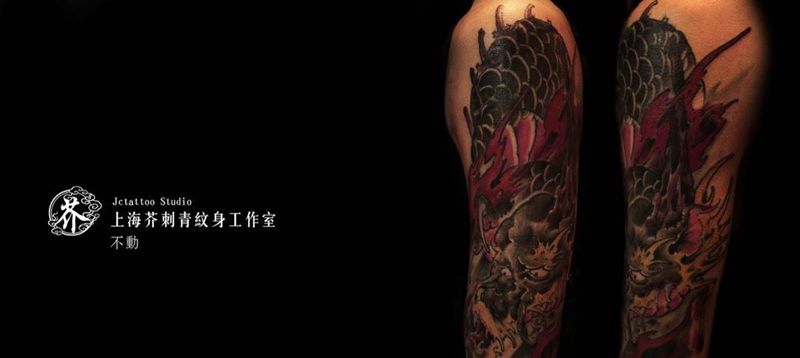 当前位置: 首页 >上海市纹身店-须弥山XUMISHAN TATTOO SHOP (原芥刺青)纹身图案>大臂外侧小龙纹身图片_手稿成品习俗手臂传统鬼神原创宗教纹身图案