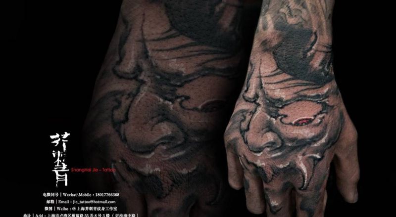 当前位置: 首页 >上海市纹身店-须弥山XUMISHAN TATTOO SHOP (原芥刺青)纹身图案>手背 般若纹身图片_手稿成品手部传统习俗原创鬼神宗教纹身图案