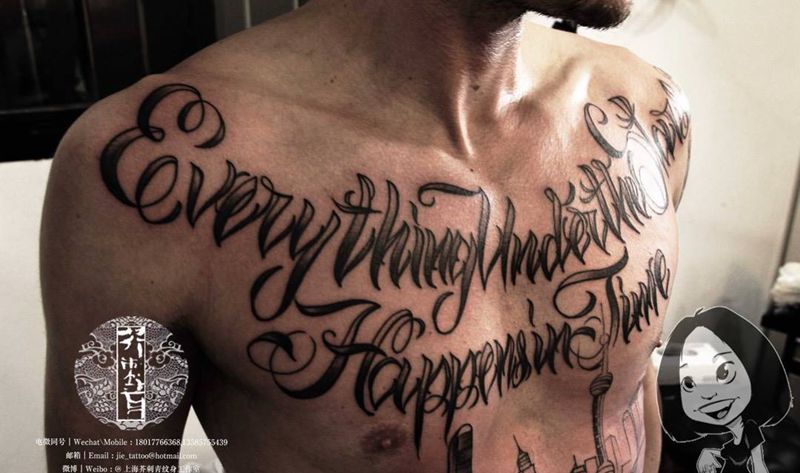 当前位置: 首页 >上海市纹身店-须弥山XUMISHAN TATTOO SHOP (原芥刺青)纹身图案>花体纹身图片_手稿成品传统欧美清新原创图腾宗教胸部纹身图案