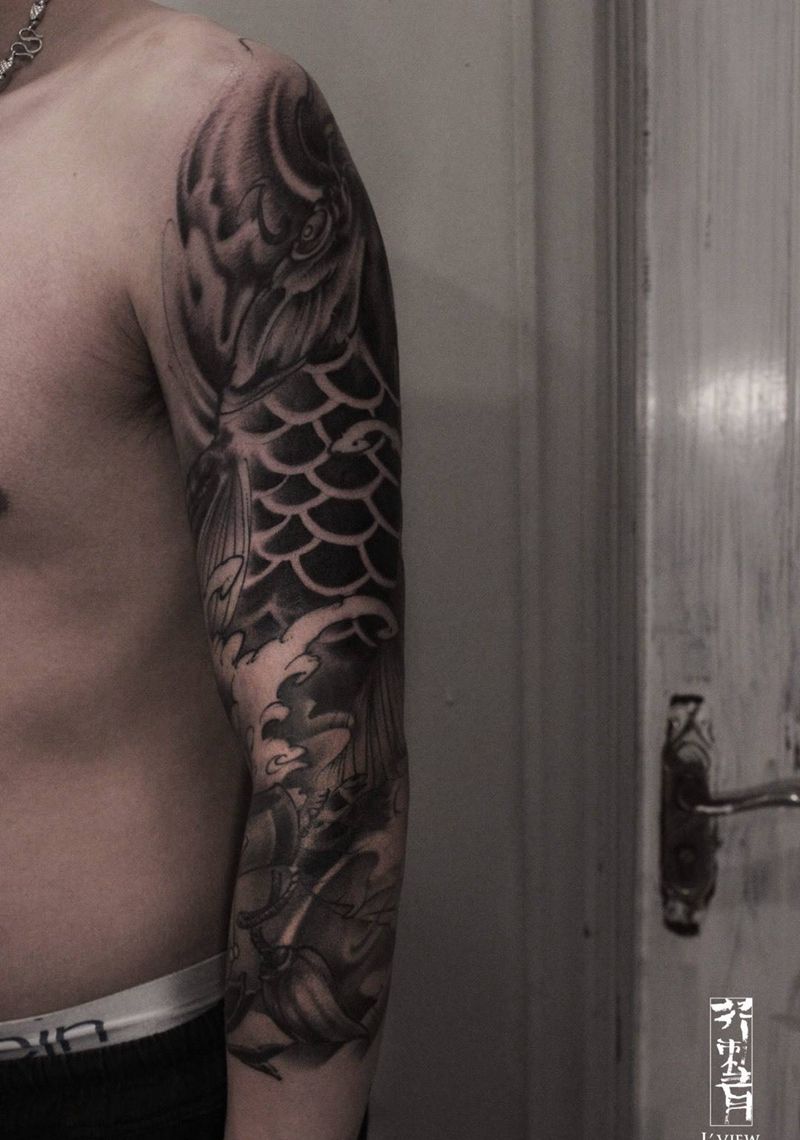 黑鲤纹身图片_手稿成品手臂国画传统习俗原创动物腿部纹身图案