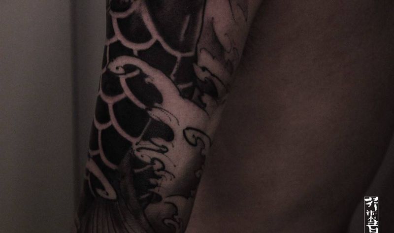 当前位置: 首页 >上海市纹身店-须弥山XUMISHAN TATTOO SHOP (原芥刺青)纹身图案>黑鲤纹身图片_手稿成品手臂国画传统习俗原创动物腿部纹身图案