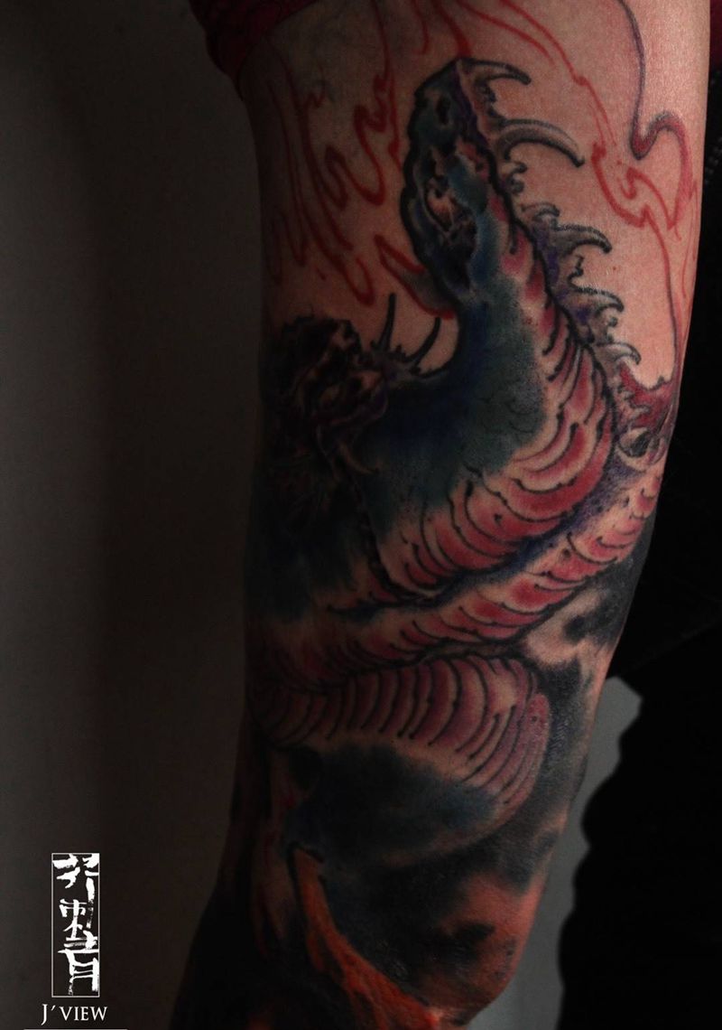 • T网红王老大花腿龙纹身图片_腿部新传统纹身图案