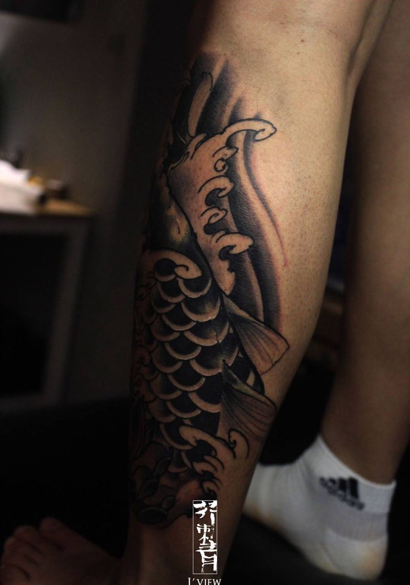 鲤纹身图片_手稿成品手臂腿部国画传统习俗原创动物纹身图案