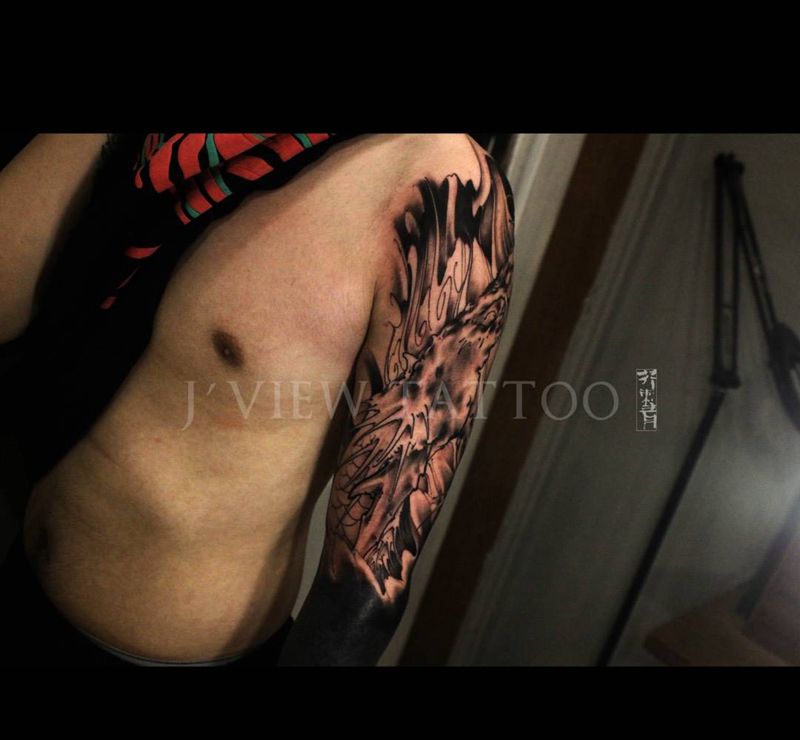 • 纹身吧推荐的披肩图腾半胛纹身图案作品展示
