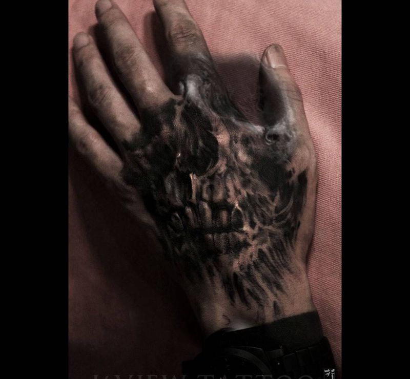 70%纹身图片_手稿成品欧美写实原创手部鬼神人物纹身图案