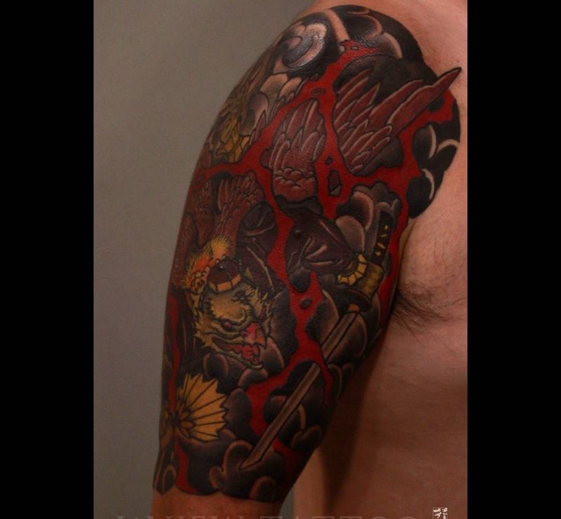 • 纹身吧推荐的披肩图腾半胛纹身图案作品展示