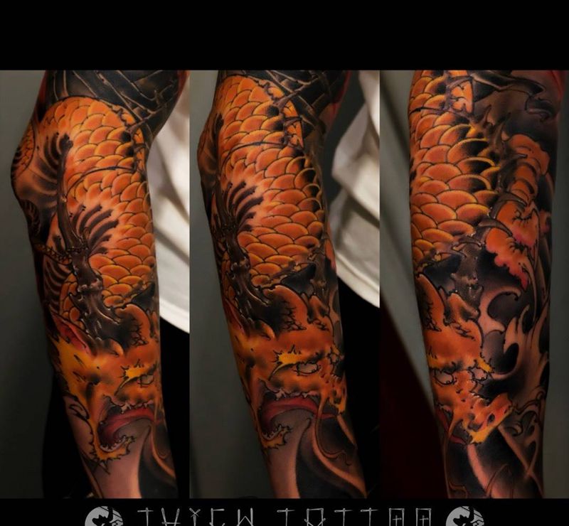 • T网红王老大花腿龙纹身图片_腿部新传统纹身图案