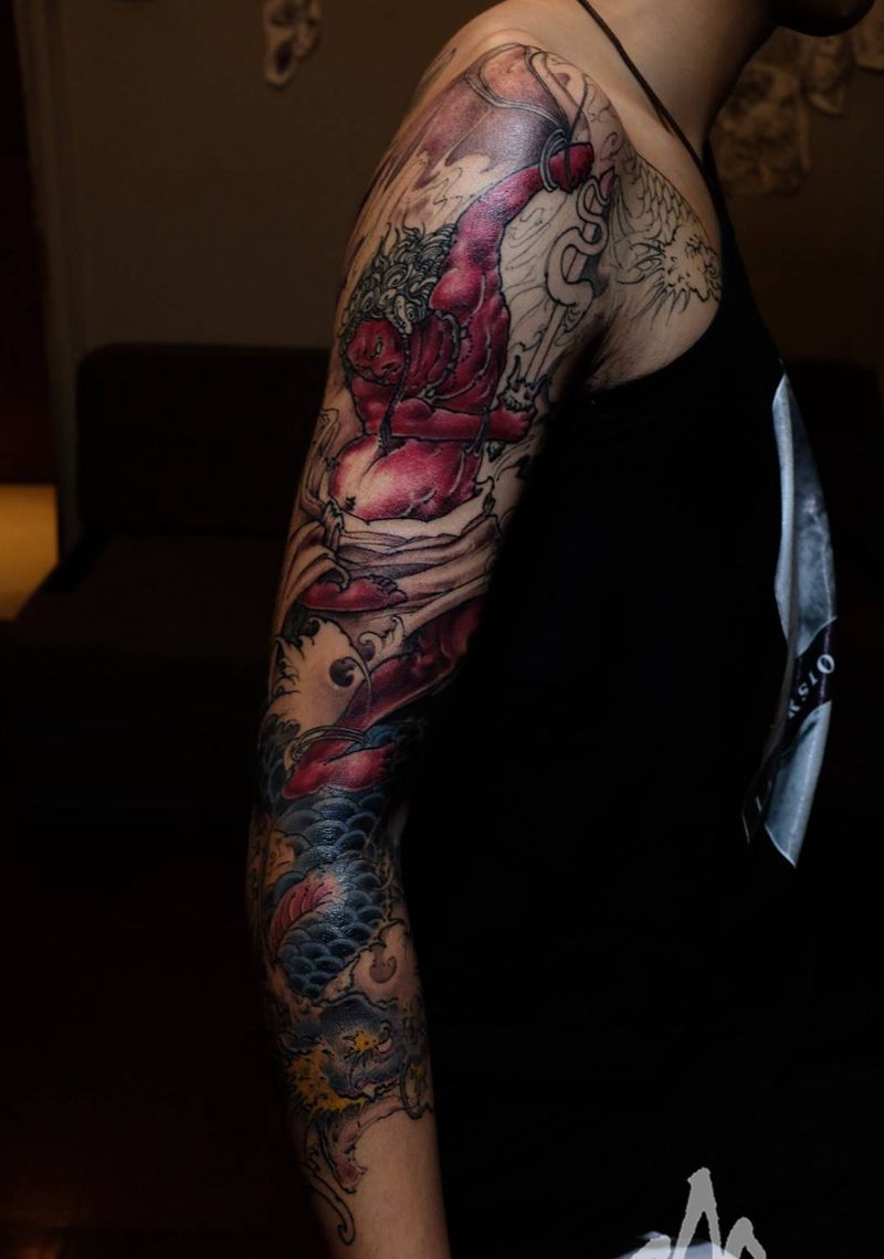 当前位置: 首页 >上海市纹身店-须弥山XUMISHAN TATTOO SHOP (原芥刺青)纹身图案>不動明王 进度纹身图片_手稿手臂习俗传统原创鬼神人物宗教背部成品纹身图案