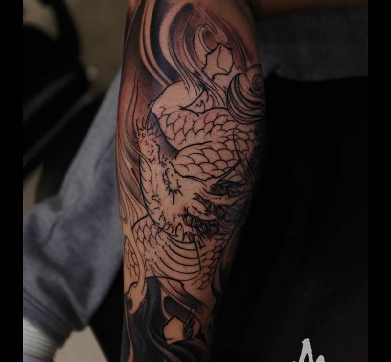 • T网红王老大花腿龙纹身图片_腿部新传统纹身图案