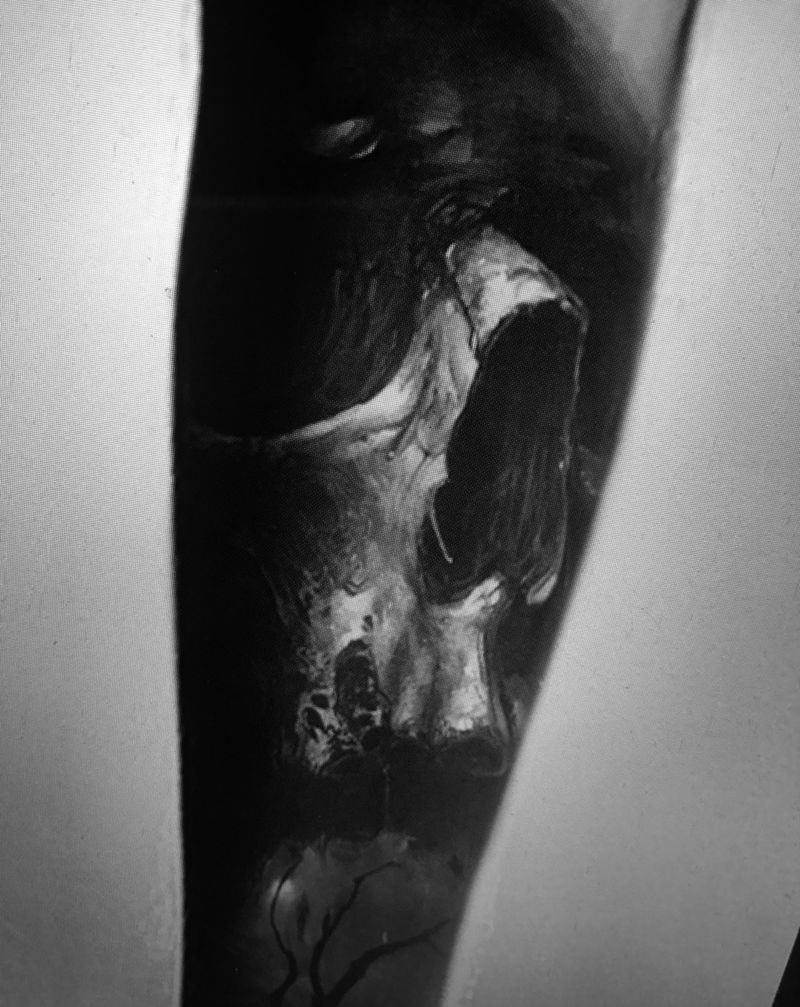 当前位置: 首页 >上海市纹身店-须弥山XUMISHAN TATTOO SHOP (原芥刺青)纹身图案>黑灰写实可约题材纹身图片_手稿成品手臂肖像写实欧美原创动物人物纹身图案