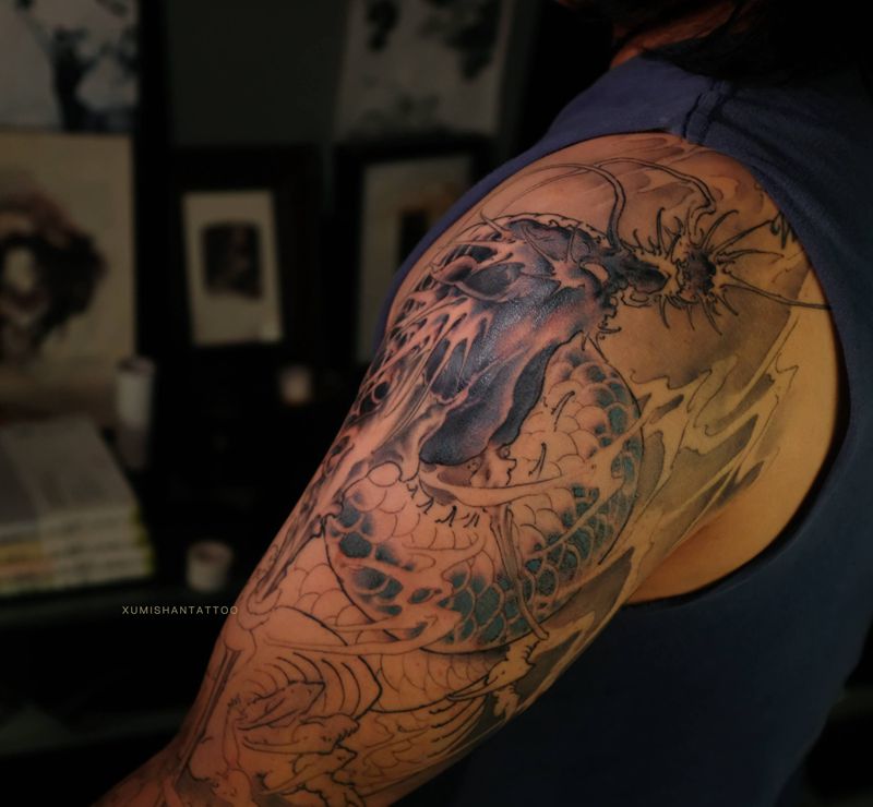 当前位置: 首页 >上海市纹身店-须弥山XUMISHAN TATTOO SHOP (原芥刺青)纹身图案>进度纹身图片_手臂新传统纹身图案