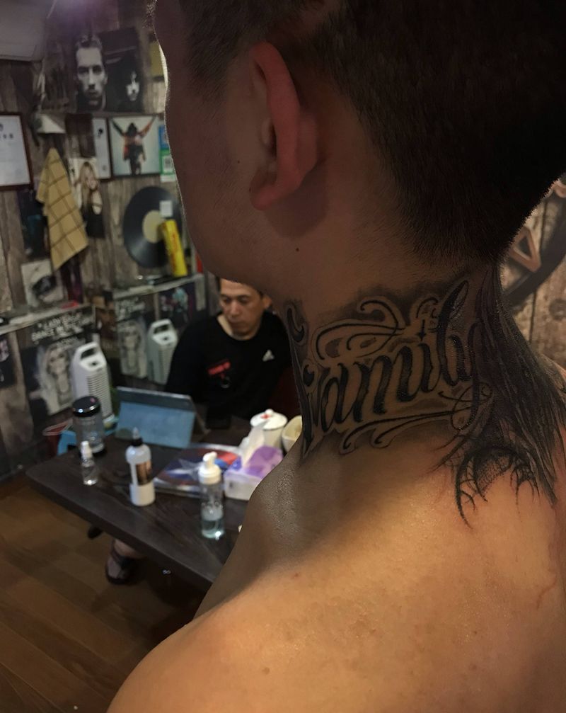 当前位置: 首页 >上海市纹身店-文源堂纹身纹身图案>乱纹身图片_颈部花体字纹身图案