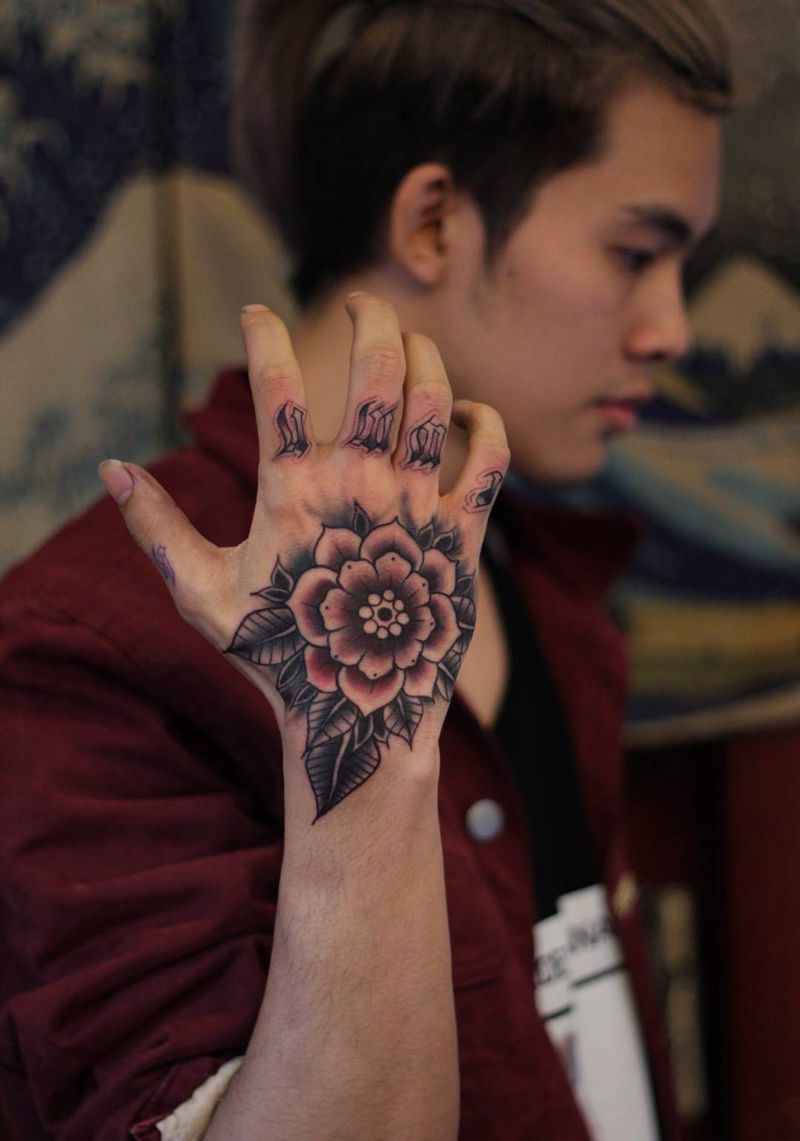 • 手背潮流时尚的玫瑰花眼睛纹身图案