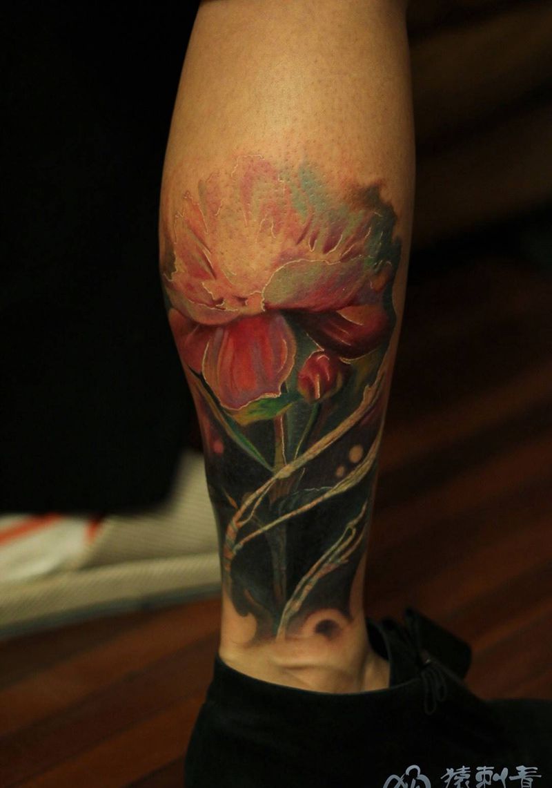• T网红王老大花腿龙纹身图片_腿部新传统纹身图案