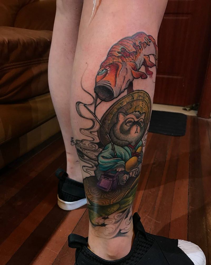 • T网红王老大花腿龙纹身图片_腿部新传统纹身图案