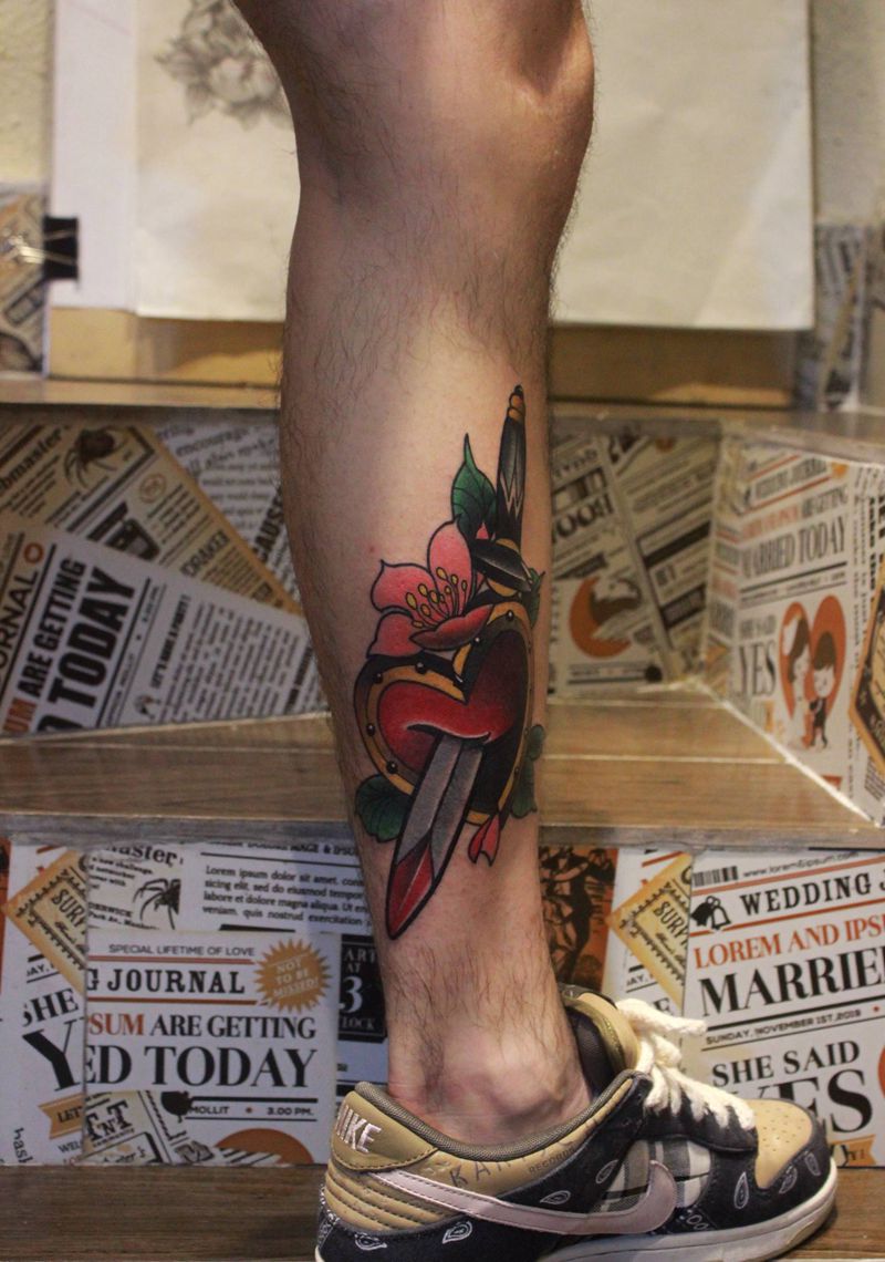 • T网红王老大花腿龙纹身图片_腿部新传统纹身图案