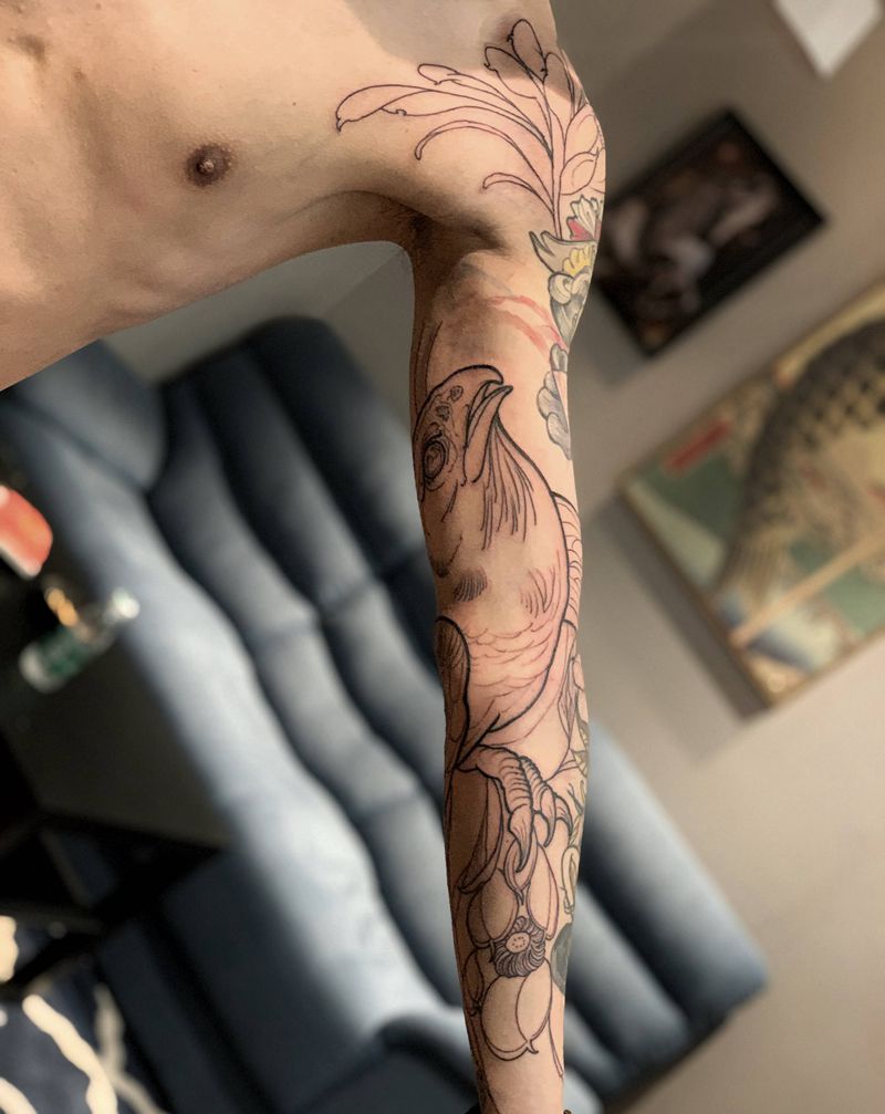 当前位置: 首页 >上海市纹身店-猿刺青纹身图案>拼接newschool花臂纹身图片_手臂New School纹身图案
