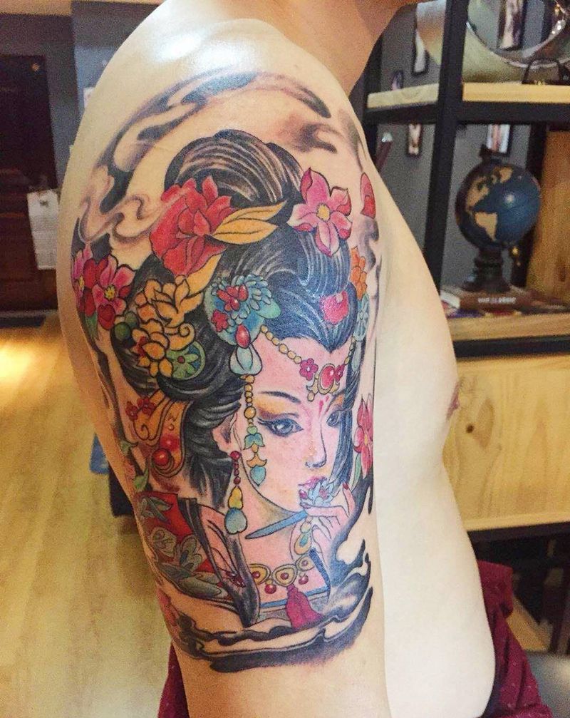 当前位置: 首页 >上海市纹身店-锦体纹身纹身图案>艺妓纹身图片_肩部纹身图案