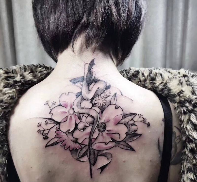 当前位置: 首页 >上海市纹身店-影刺青纹身图案>花纹身图片_背部成品欧美清新国画植物静物原创纹身图案