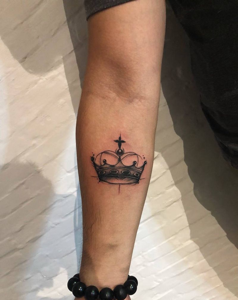 工作:素描风格情侣皇冠纹身图片_手臂几何纹身图案