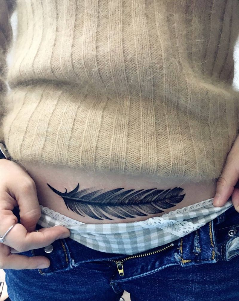 羽毛覆盖剖腹产纹身图片_成品欧美静物腹部纹身图案