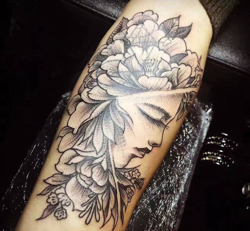 覆盖纹身图片_成品手臂欧美人物植物纹身图案