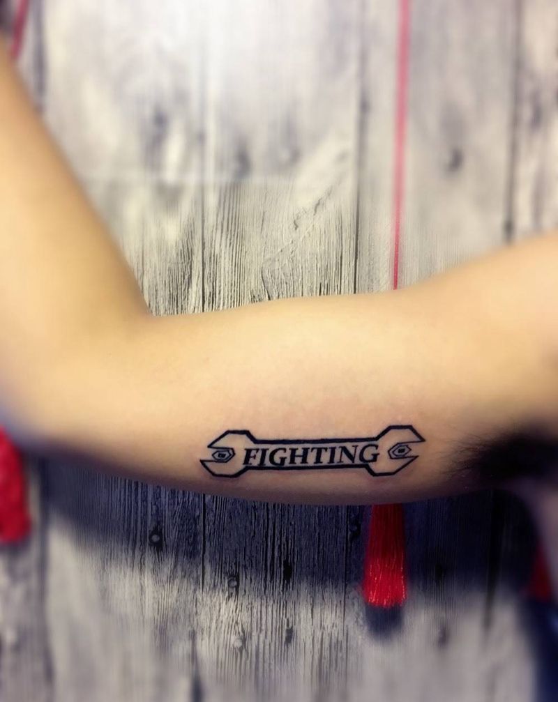 当前位置: 首页 >上海市纹身店-霸龙堂刺青纹身图案>扳手纹身图片_成品手臂欧美静物字符原创纹身图案
