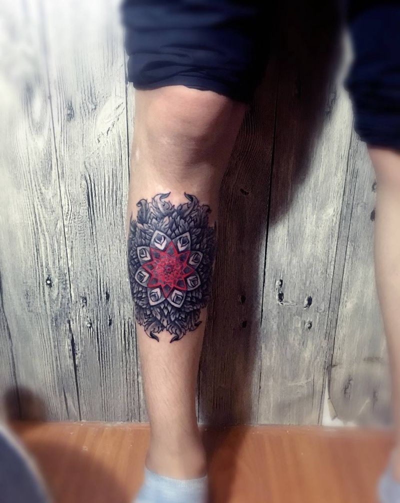 曼陀罗花遮疤纹身图片_成品腿部欧美几何静物宗教原创纹身图案