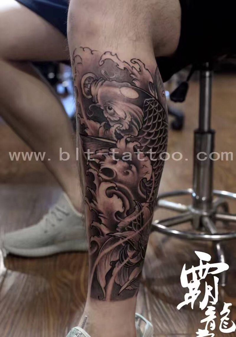当前位置: 首页 >上海市纹身店-霸龙堂刺青纹身图案>更新作品(传统鲫鱼抱小腿)纹身图片