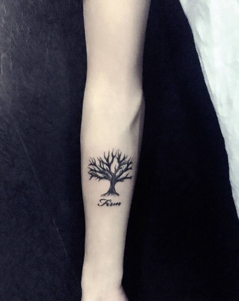 当前位置: 首页 >上海市纹身店-霸龙堂刺青纹身图案>小树纹身图片_成品手臂欧美植物字符纹身图案