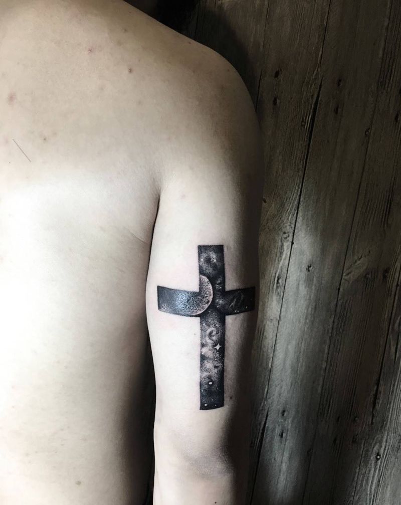 十字架里的星空。纹身图片_成品手臂欧美写实清新几何静物原创纹身图案