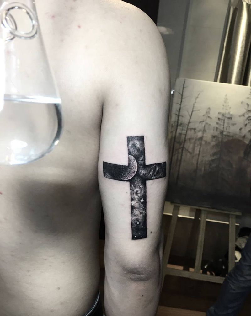 十字架里的星空。纹身图片_成品手臂欧美写实清新几何静物原创纹身图案