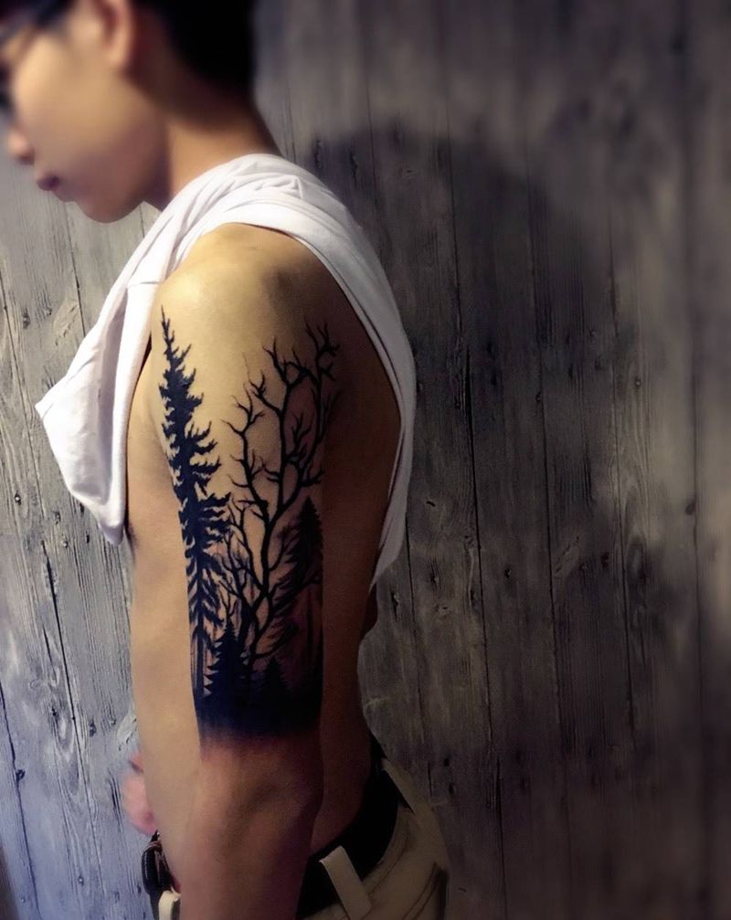 原创森林纹身图片_成品手臂肩部欧美写实静物植物纹身图案