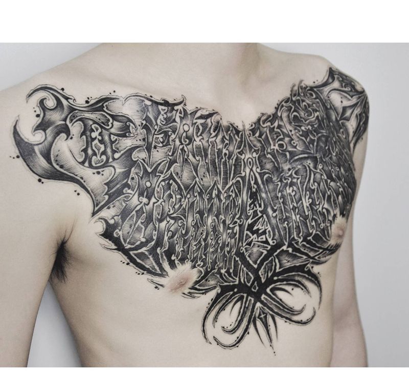 奇卡诺花胸纹身图片_胸部花体字纹身图案