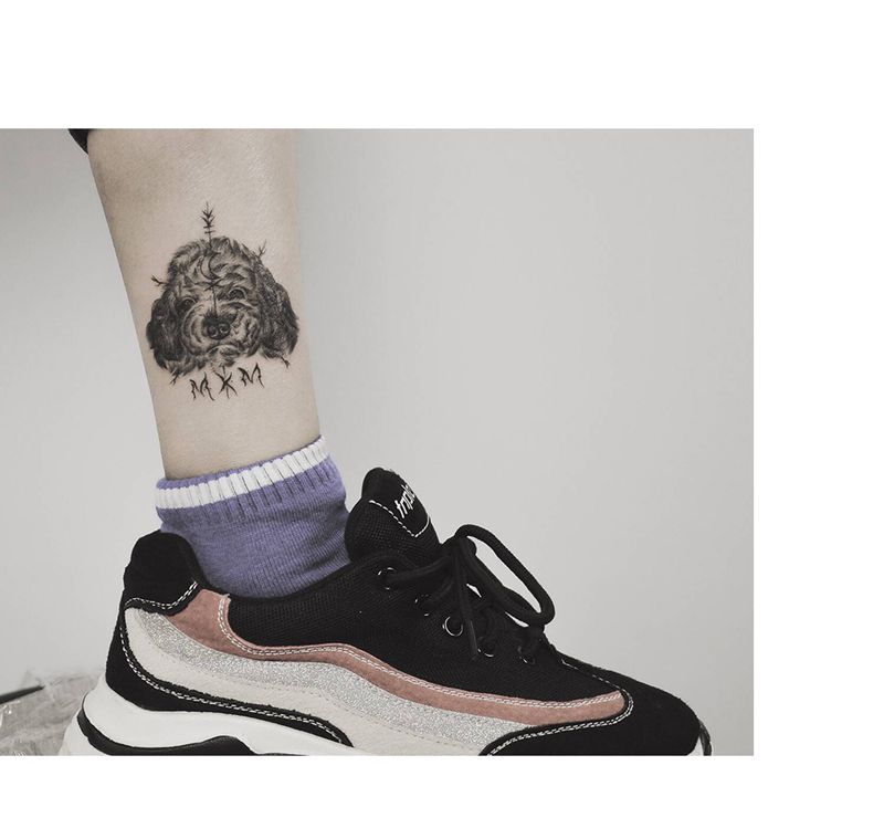 客人的爱宠纹身图片_腿部纹身图案