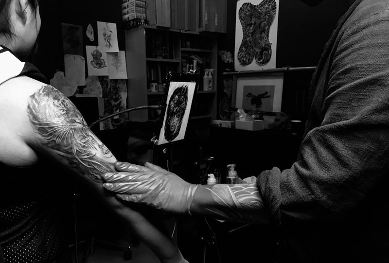 当前位置: 首页 >上海市纹身店-上海桃刺青TaoTattoo纹身图案>老虎女郎纹身图片