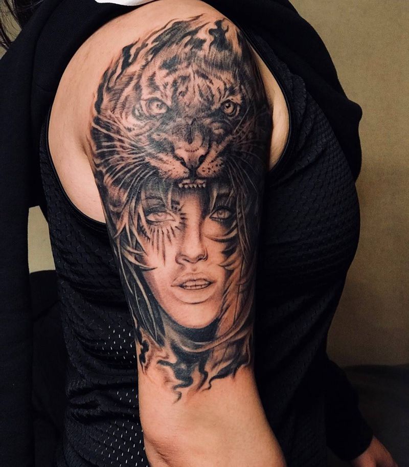 当前位置: 首页 >上海市纹身店-上海桃刺青TaoTattoo纹身图案>老虎女郎纹身图片