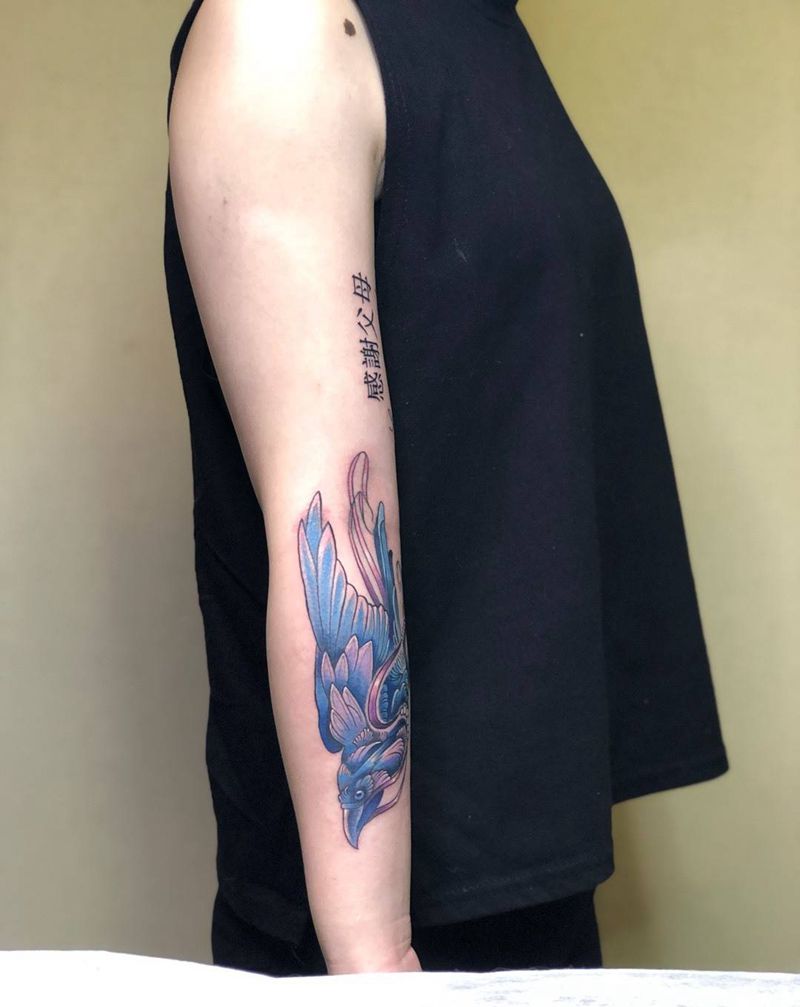 当前位置: 首页 >上海市纹身店-上海桃刺青TaoTattoo纹身图案>飞鸟纹身图片_手臂New School纹身图案