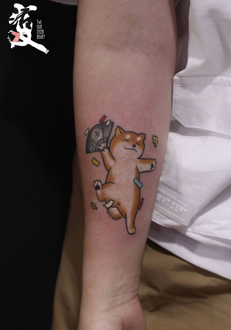 宠物纹身纹身图片_手臂Old School柴犬可爱女生纹身图案