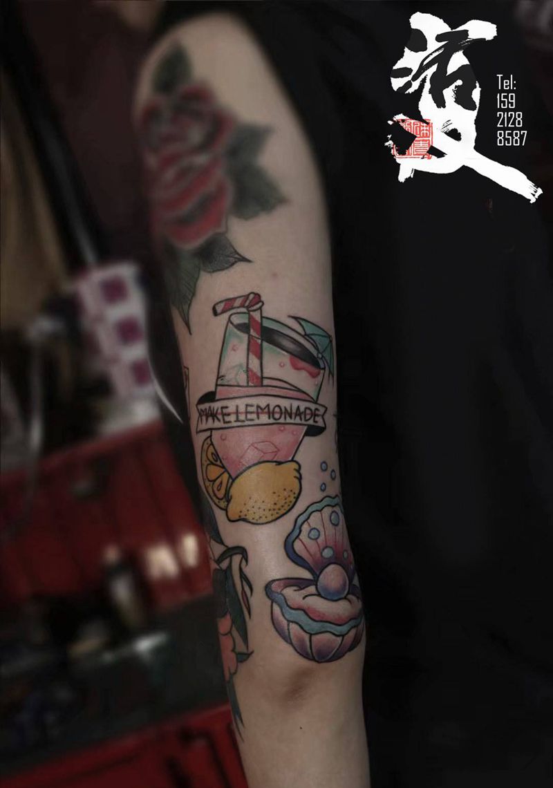 当前位置: 首页 >上海市纹身店-上海复活刺青纹绣工作室纹身图案>School拼接花臂纹身图片_手臂Old School纹身图案